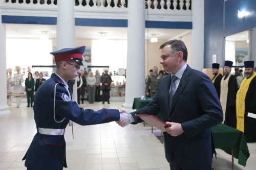 Кодекс чести – ключевое событие в жизни белокалитвинских кадет. Первую в своей жизни присягу на верность Родине и товарищам воспитанники принимают в год поступления в корпус. Эту традицию, существующую 23 года, с момента создания образовательного учреждения, в этом году поддержали 75 кадет, и среди них - 26 девушек. Губернатор поздравил ребят с торжественным событием - принимая Кодекс чести, они вступают в казачье братство. «Воспитание и образование, которое вы получаете в казачьем кадетском корпусе, возможно, станет определяющим для вашей будущей карьеры. Для тех ребят, кто хочет идти путём служения Отечеству, правительство региона создает все условия. Сейчас на Дону порядка 780 учебных заведений, которые развивают казачью культуру и традиции. К 2030 году их будет более девятисот», - сказал Юрий Слюсарь. Учиться в Белокалитвинском корпусе – честь для юношей и девушек. Большинство выпускников успешно поступают в вузы, а само учреждение дважды признавалось лучшим в стране. Особые слова глава региона адресовал выпускникам, участвующим в СВО, и кадетам, оказывающим поддержку фронту и сверстникам из исторических регионов России. Губернатор пожелал ребятам беречь традиции и стать достойными наследниками славной истории донского казачества. После церемонии глава региона пообщался с кадетами в неформальной обстановке. Губернатор поделился с ребятами мнением о выборе профессии и жизненных принципах. Разговор шел на самые разные темы - от роботизации производства и внедрения искусственного интеллекта до отношения к работе и людям. Без совести и души нельзя сделать правильный выбор своего дела, любая служба должна быть основана на совести, считает Юрий Слюсарь. В Белой Калитве Юрий Слюсарь возложил цветы к мемориалу землякам-героям специальной военной операции, торжественно открытому в конце прошлого года. Композиция из шести колонн, увенчанных журавлями, хранит имена павших воинов. Мемориал, созданный общими усилиями жителей района, стал символом народной памяти. Об этом сообщил сайт правительства Ростовской области. |