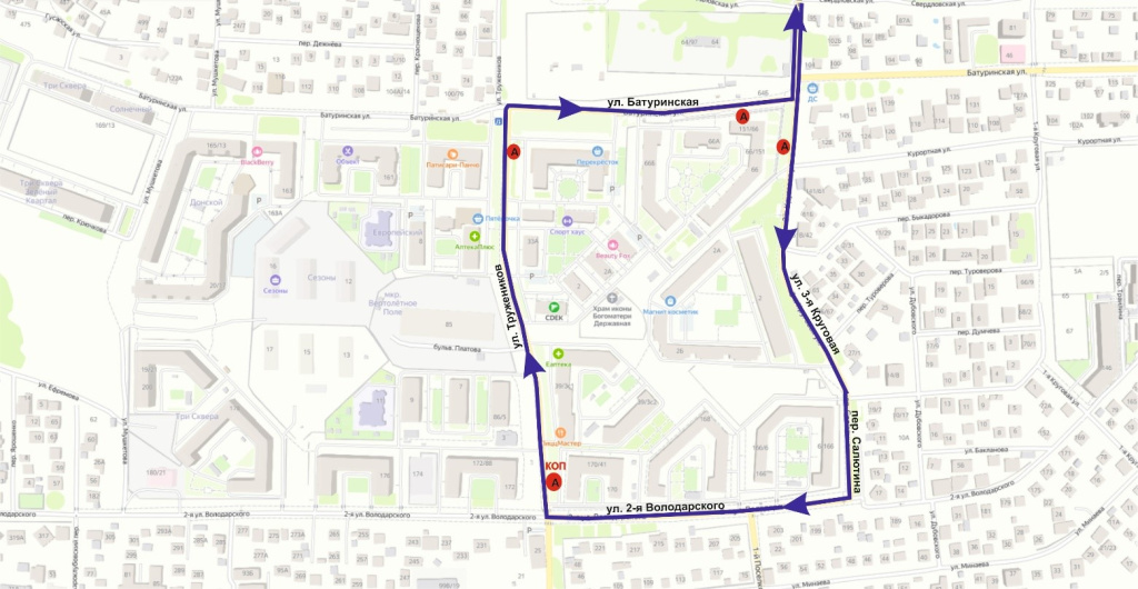 ул. Тружеников/бул. Платова, 41/170, ул. Тружеников, 31/157, ул. Батуринская, 151/ул. 3-я Круговая, 66 (южная и западная стороны), с 27.12.2025 будут изменены схемы движения автобусных маршрутов №№ 41, 56 и 72 по ул. 3-я Круговая, ул. 2-я Володарского, ул. Тружеников, ул. Батуринская. Данное изменение позволит улучшить транспортную доступность для жителей мкр. «Вертолетное поле». Об этом сообщил сайт администрации Ростова. |