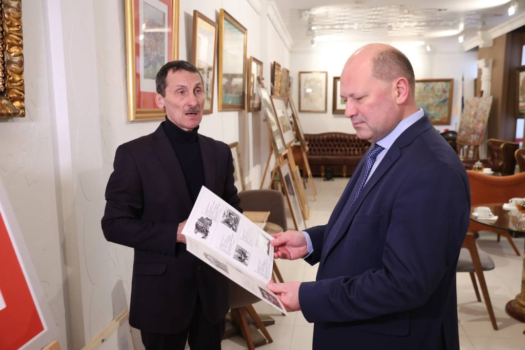 Глава города посетил его выставочное пространство на ул. Пушкинской. Николай Викторович провел по залам галереи. Художественная коллекция весьма богата - состоит из подлинных произведений искусства, выполненных в разных техниках. Николай Викторович в своей работе нацелен на формирование культурного облика Ростова-на-Дону, популяризацию русской культуры, патриотическое воспитание подрастающего поколения. Галерея регулярно проводит передвижные выставки в России и за рубежом, рассказывая о памятных местах и выдающихся ростовчанах. Александр Скрябин обсудил с Николаем Викторовичем и Год Андрея Байкова в городе. - Автор подготовил и планирует продолжать серию работ, посвященных легендарному градоначальнику, - отметил глава города. Об этом сообщил сайт администрации Ростова. |
