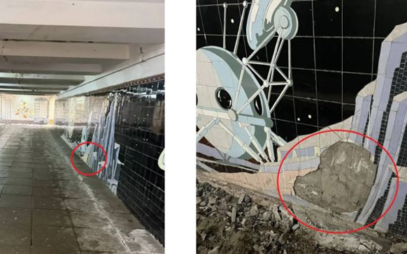 - Перед разработкой проектной документации на реставрацию подземного пешеходного перехода был проведен анализ состояния мозаики, и зафиксированы все поврежденные участки, требующие особого внимания. Восстановление отсутствующей части мозаичного панно, о которой говорится в публикациях, включено в проектную документацию. Документ получил положительное заключение экспертизы и комитета по охране культурного наследия Ростовской области, – отметил директор МКУ ДИСОТИ Сергей Зубанов. В настоящее время в подземном переходе ведутся подготовительные работы для дальнейшей реставрации мозаичного панно и ремонта. О дате полного перекрытия перехода для пешеходов будет сообщено дополнительно. Об этом сообщил сайт администрации Ростова. |